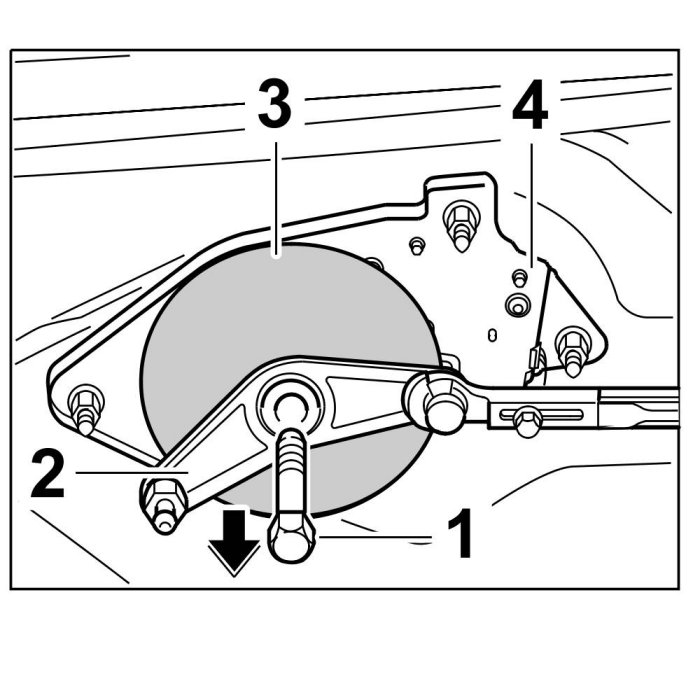 5.1. Unscrew fastening screw -1- and remove drive lever -2- and cover -3- from the hood mechanism -4- ( -arrow- ).