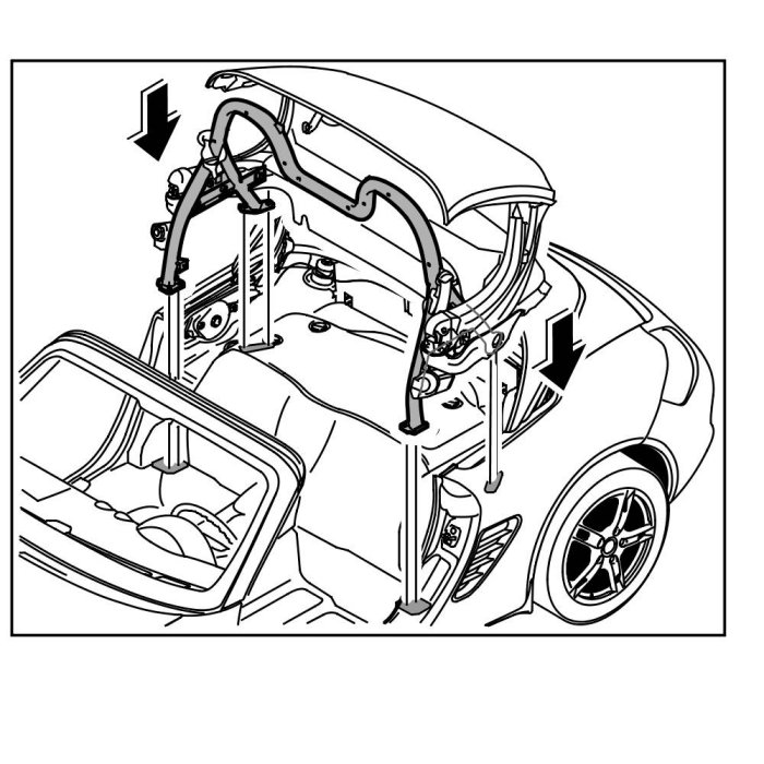 1. Fit roll-over bar into the vehicle -arrows-.