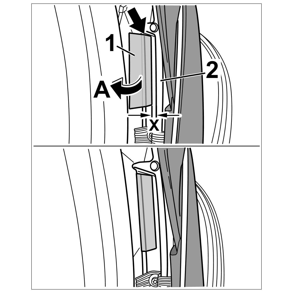 Leave a gap of 3 mm between the tangent at the edge of the main folding top bow and the guide film -dimension X-.