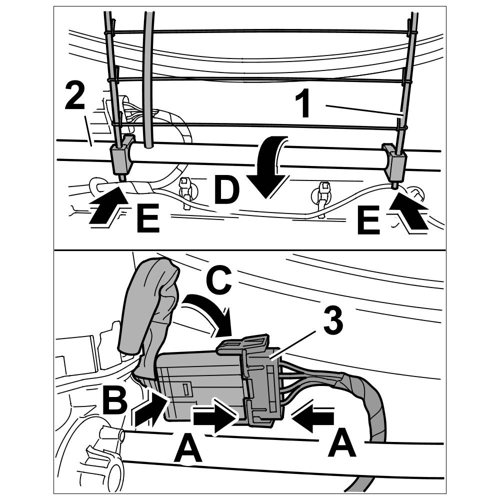 3. Push plug connection -3- together -arrows A- until it engages securely.