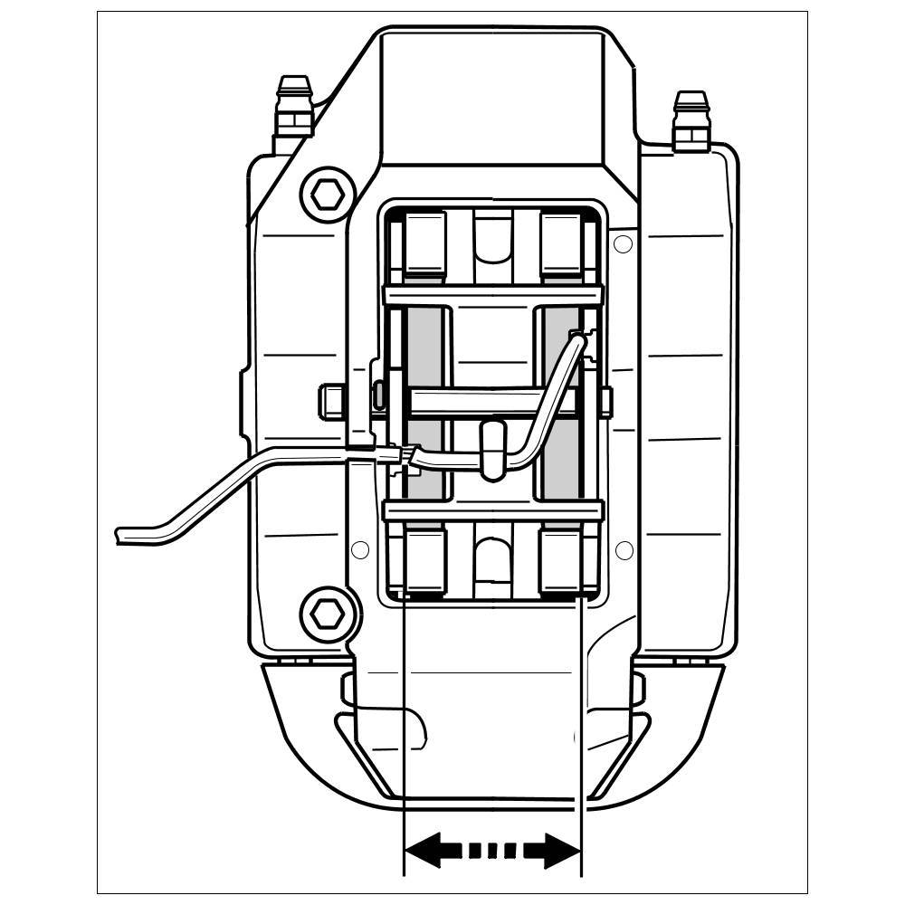 2.1. Use the piston resetting fixture Nr.144 or brake piston resetting fixture 9472 (PCCB brakes) to push the brake pads back slightly and uniformly -direction arrow-.