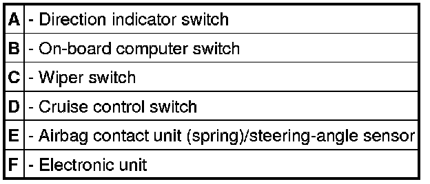 Replace the airbag contact unit (spring)/steering-angle sensor -E- and electronic unit -F-.