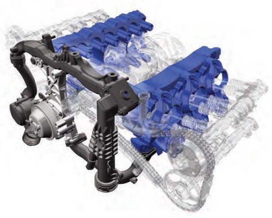 CoolingThe cooling concept is an enhancement based on the effective cylinder head cross-flow cooling used on previous models and was developed to selectively cool the hot spots in the cylinder head and crankcase. The design and position of the new coolant pump as well as the revamped internal engine cooling ducts in particular in the cylinder head are new.