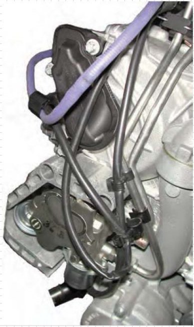 On the 3.4-liter engines with direct fuel injection, the fuel high-pressure pump is fitted on the cylinder head of cylinder bank 1-3 and is driven by the outlet