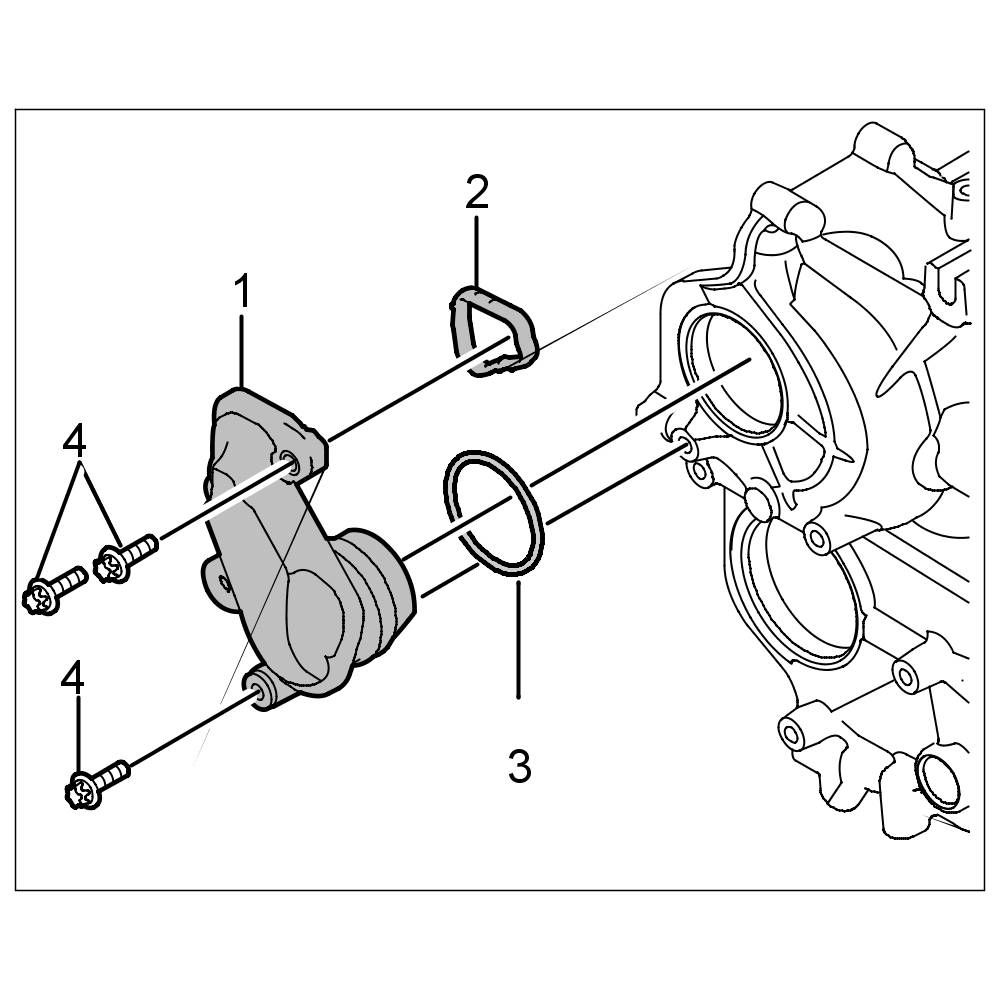 28.2. Unscrew one external Torx screw (E10, M6 x 50) -3- at the coolant regulator housing.