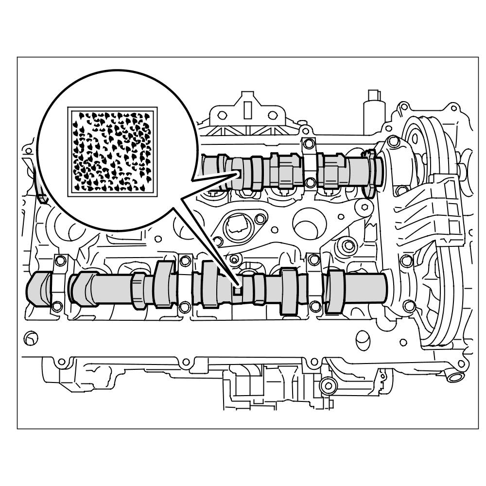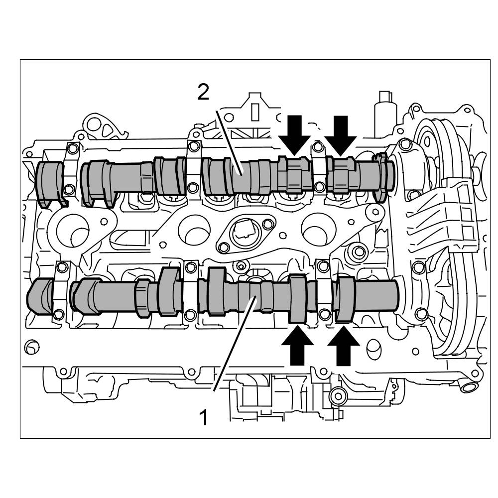 2.2. If the camshafts are at overlapping position, square markings can be seen on the outlet and intake camshaft (data matrix code). => Marking on camshafts 4-6 at overlap