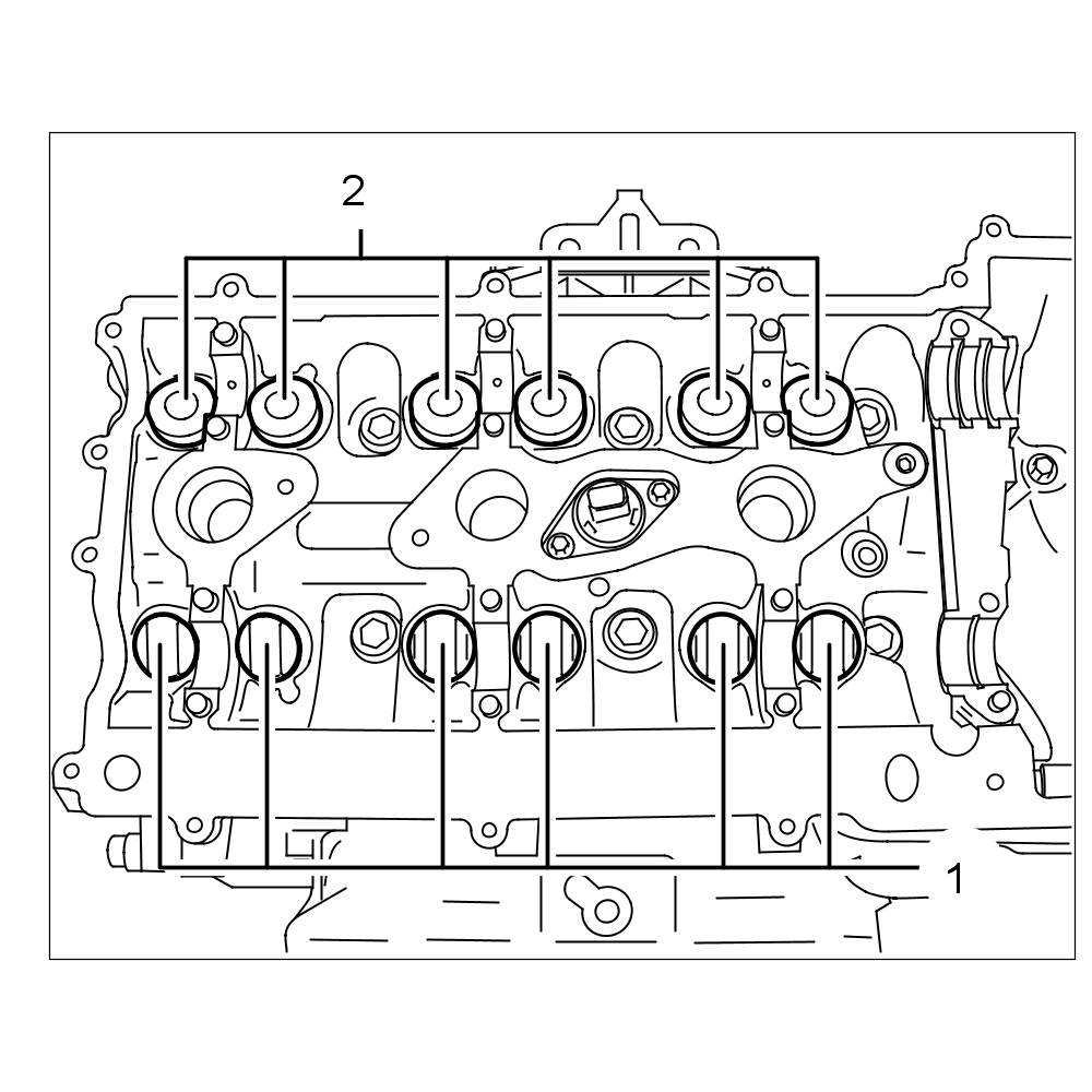4.1. Pull six bucket tappets -1- and six switching tappets -2- out of the fitted bores in the cylinder head with your thumb and index finger. Do not use a magnet.