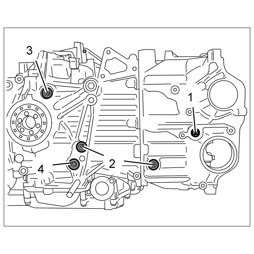 Through-bolt screws on crankcase