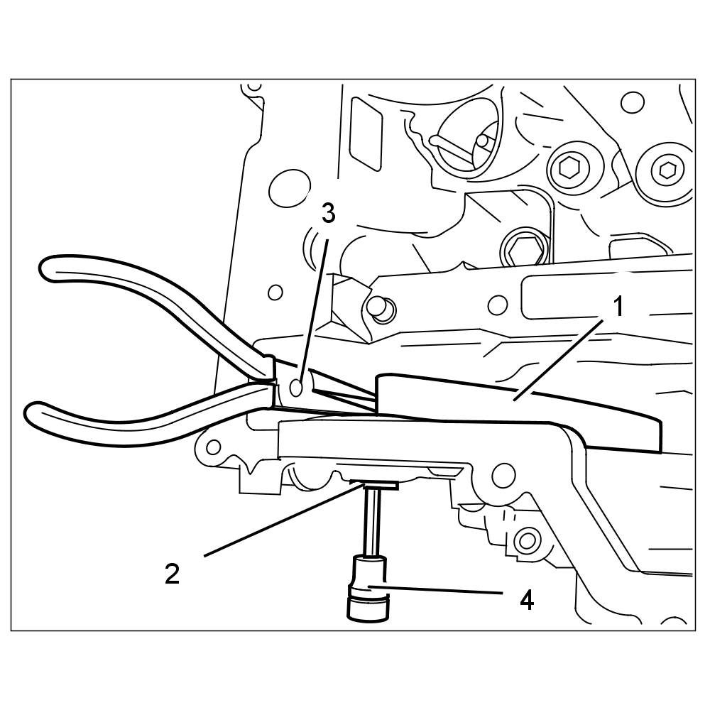 29.2. Turn the belt tensioner clockwise at the hexagon (a/f 30) and secure with an M8 screw -2- or a pin (8 mm).