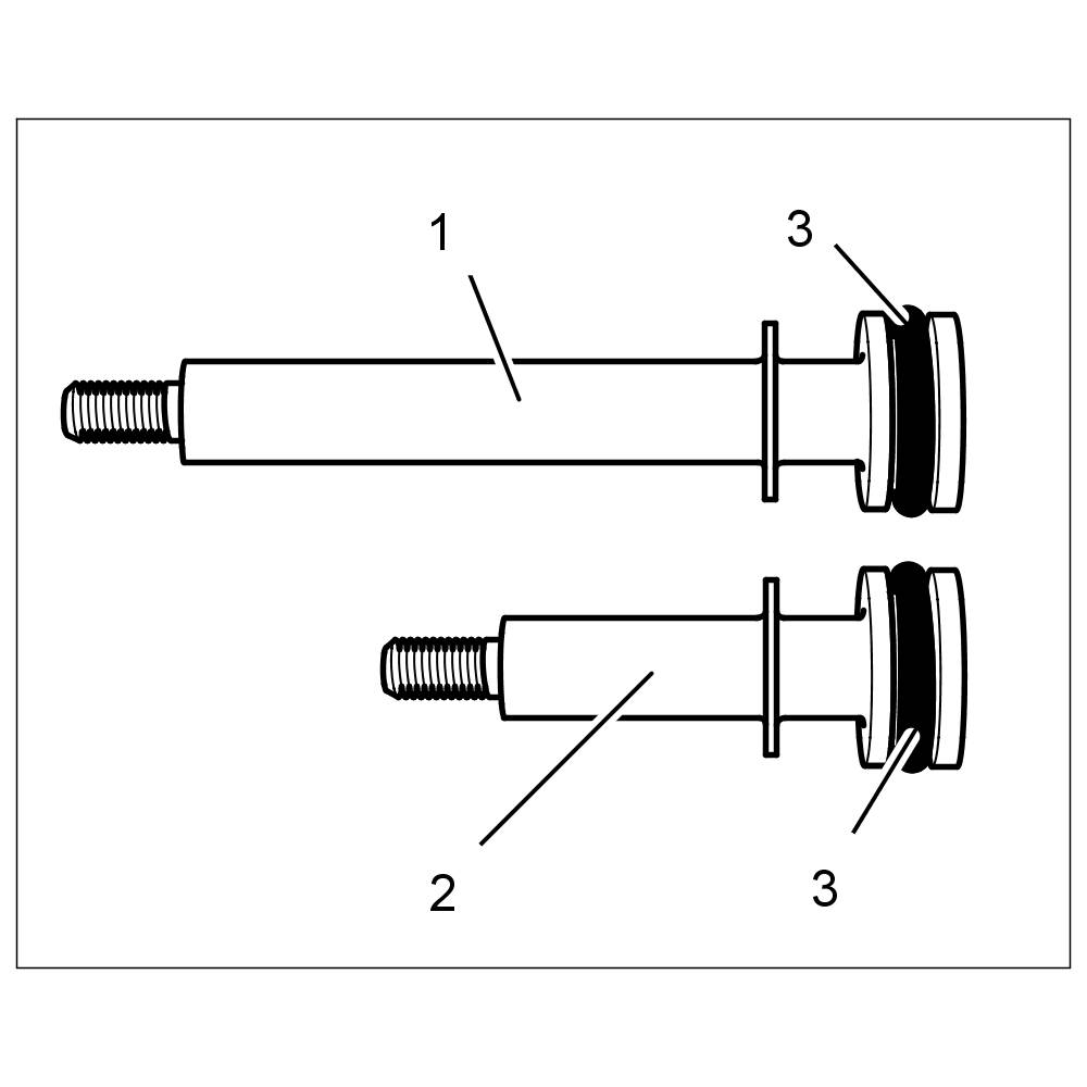 5.1. Cylinders 1-3:Unscrew one bearing pin -2- for the tensioning rail and two bearing pins -1- for the guide rail.