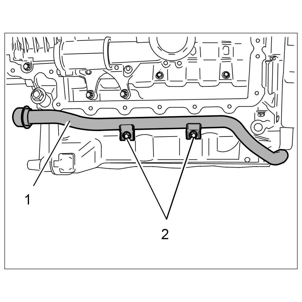 28. Remove coolant pipe -1- for the coolant regulator housing.