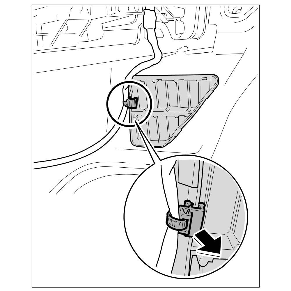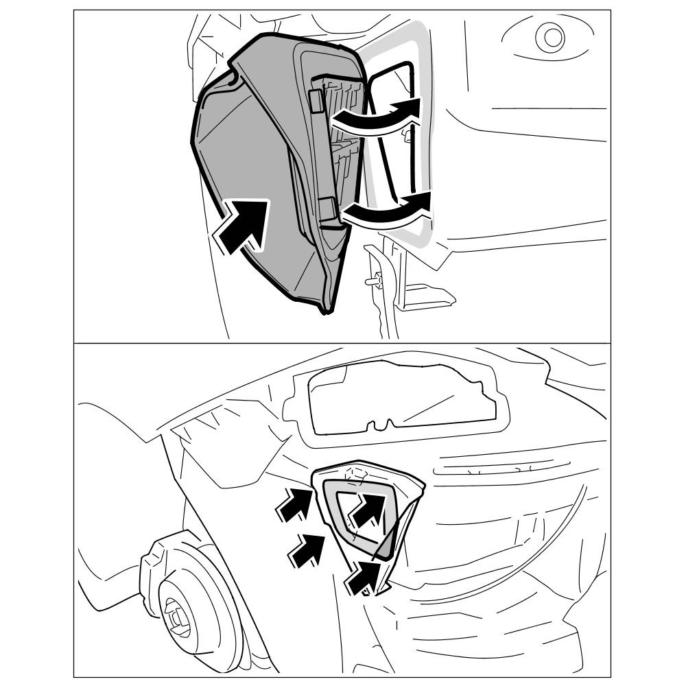 2. Unclip the ventilation cover on the body from the inside (luggage compartment area) and take off toward the outside.