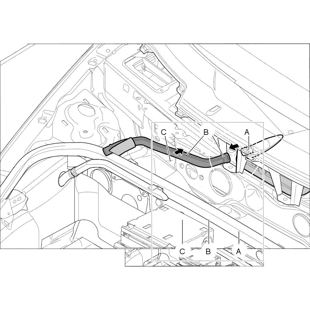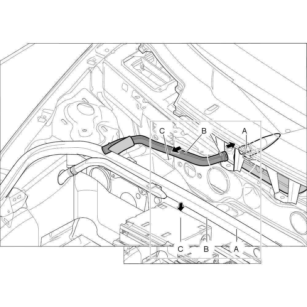 2. Pull air guide -B- out of air guide -A- and then out of air guide -C-.