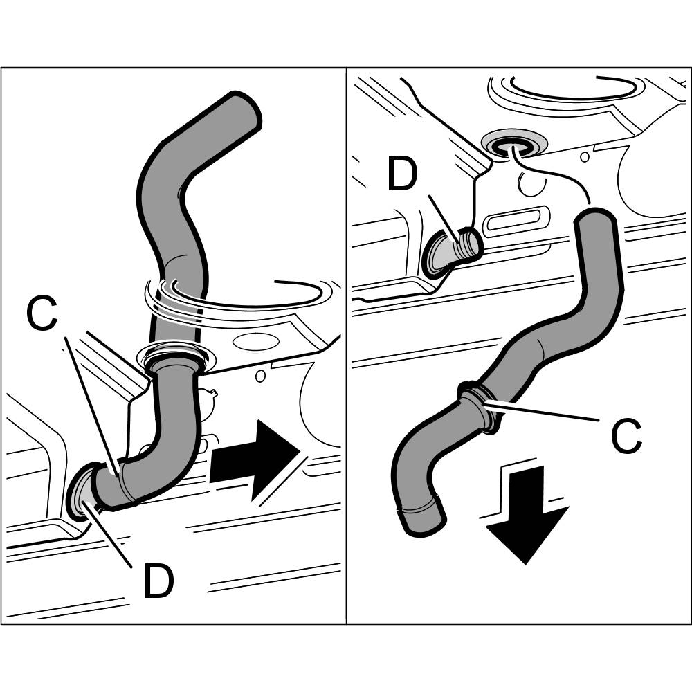 1. Pull air guide -C- out of connection -D-.