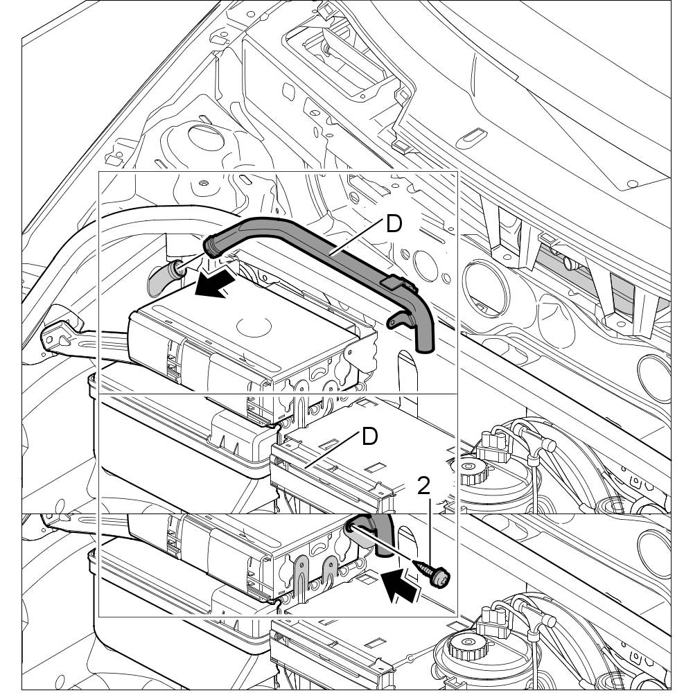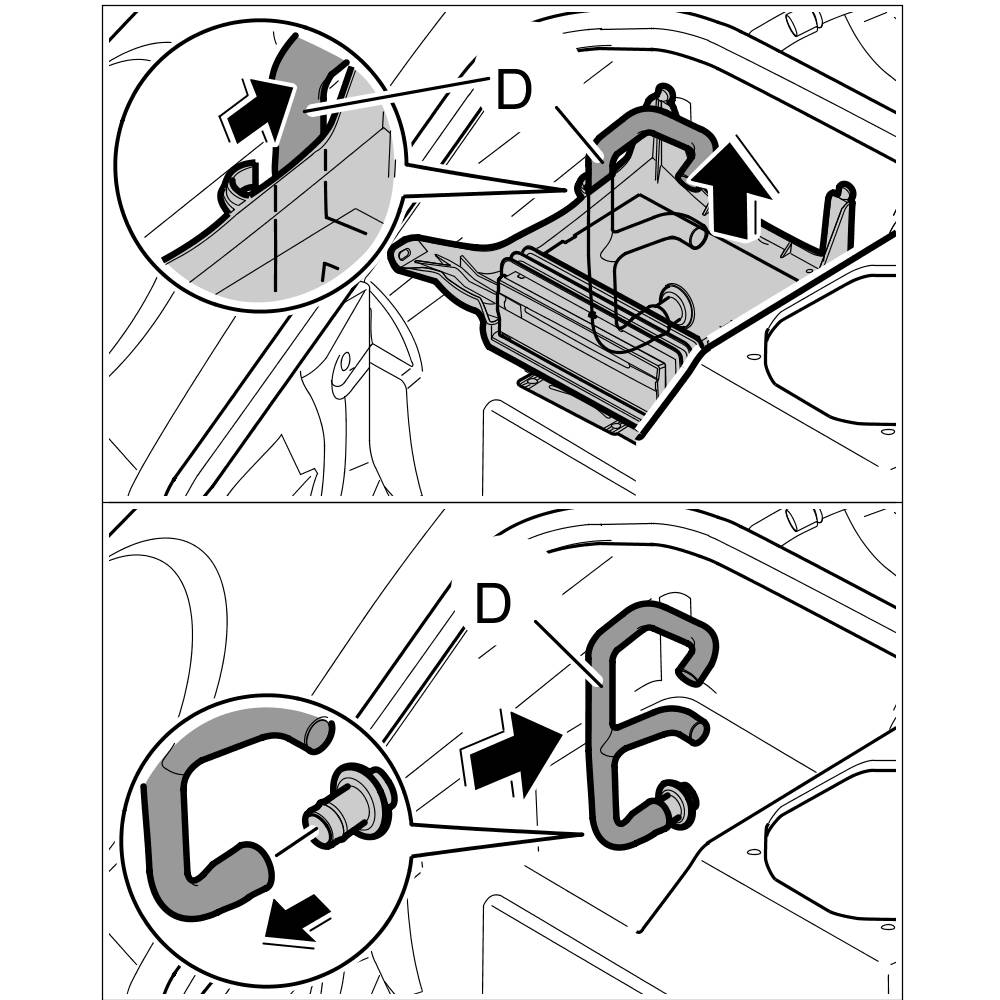 6. Pull air guide -D- out of the connection.