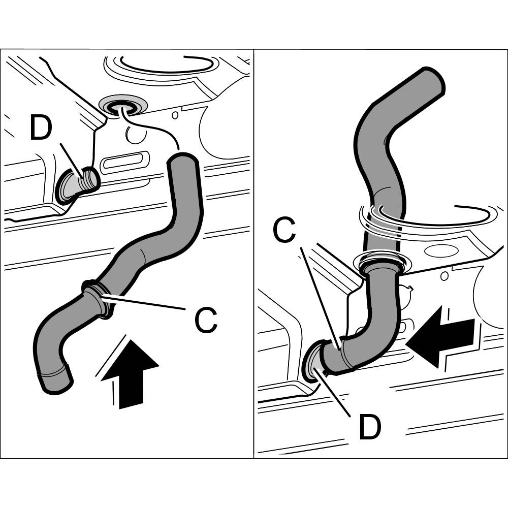 14. Insert air guide -C- into the connection -D-.