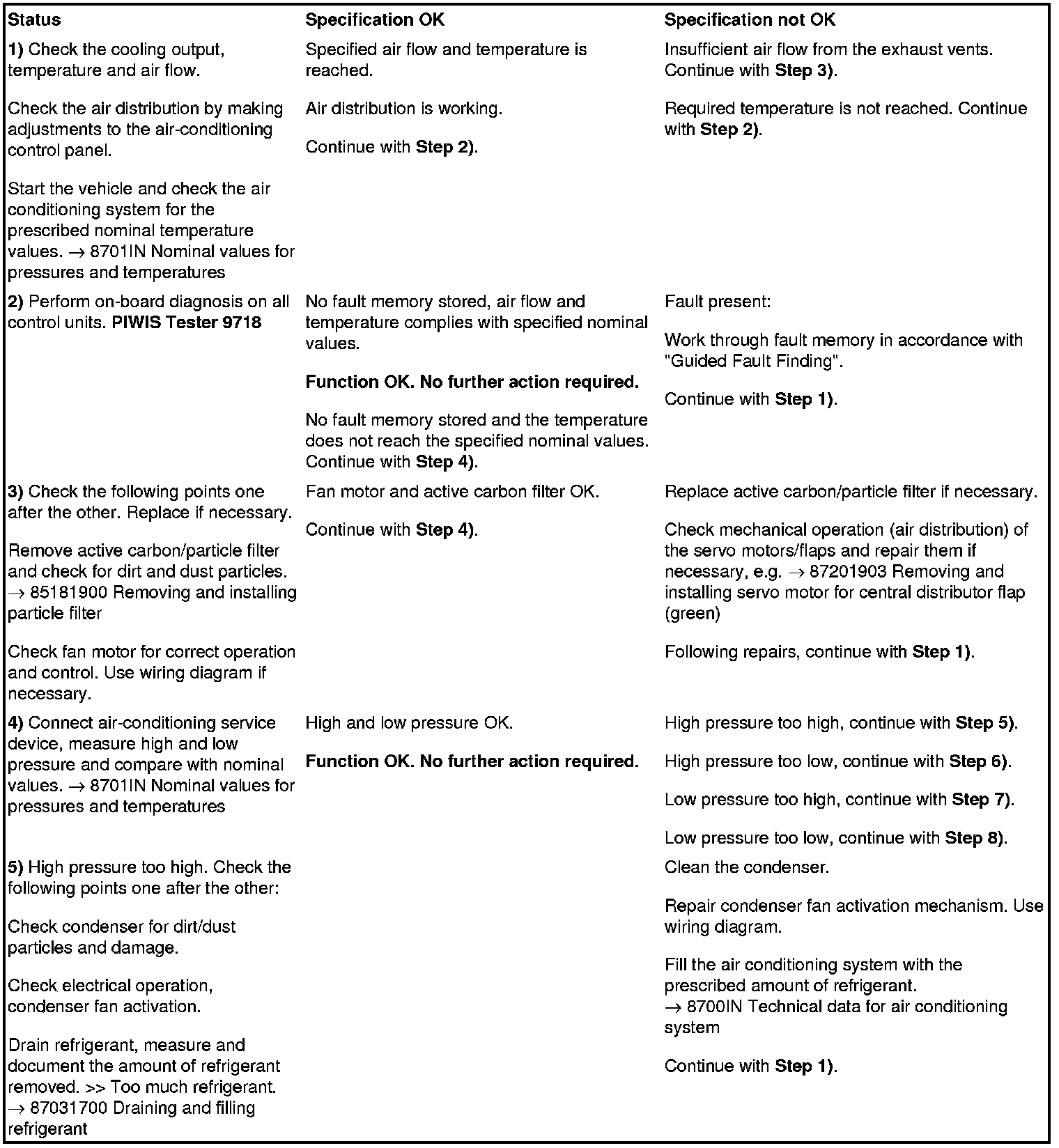 The troubleshooting steps shown must be used if complaints are received about the cooling output of the air conditioning system.