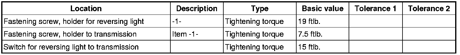 1. Install switch for reversing light. => Tightening torque: 15 ftlb.