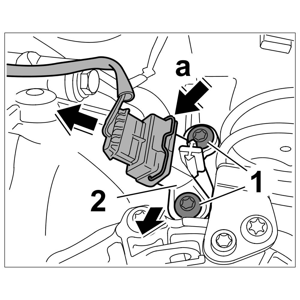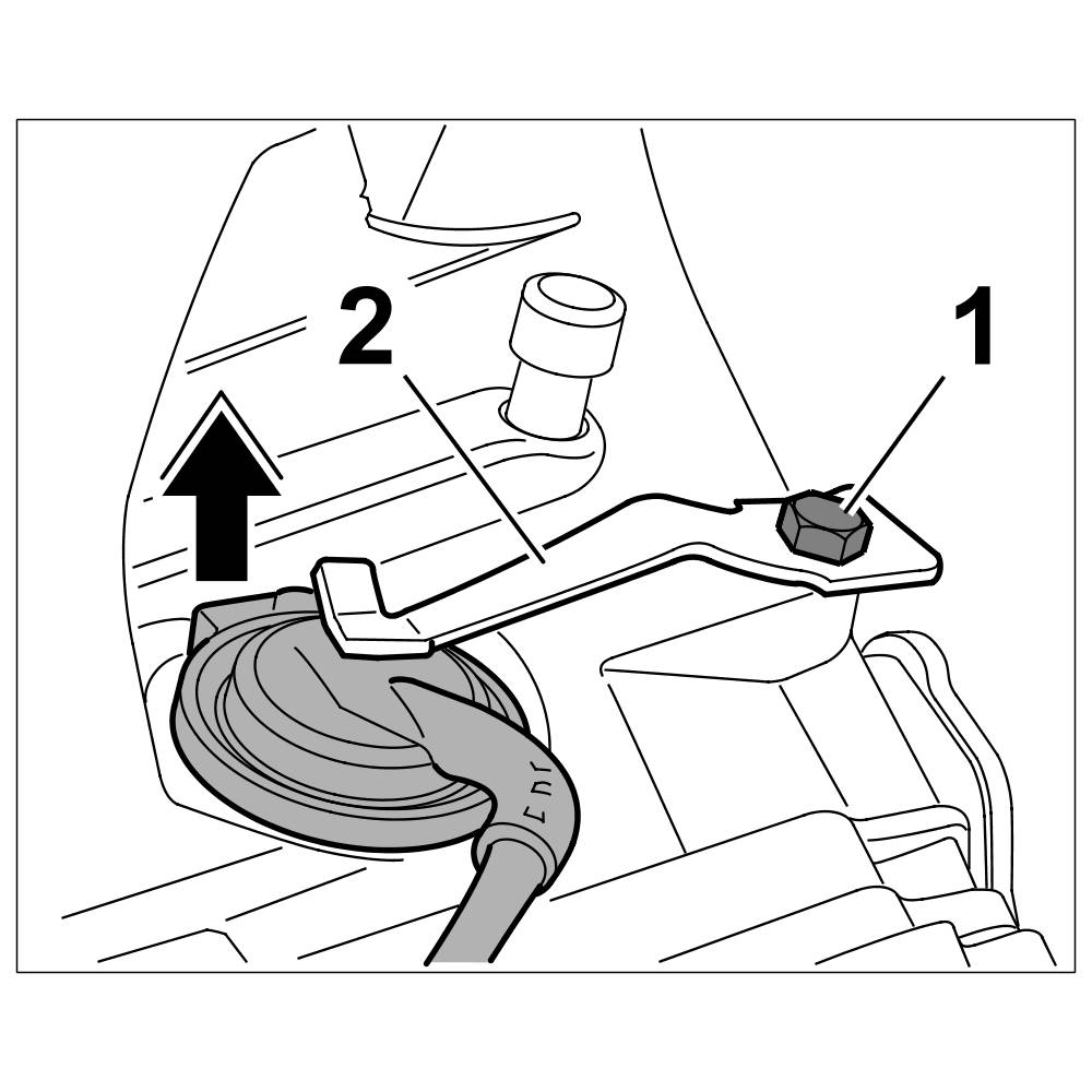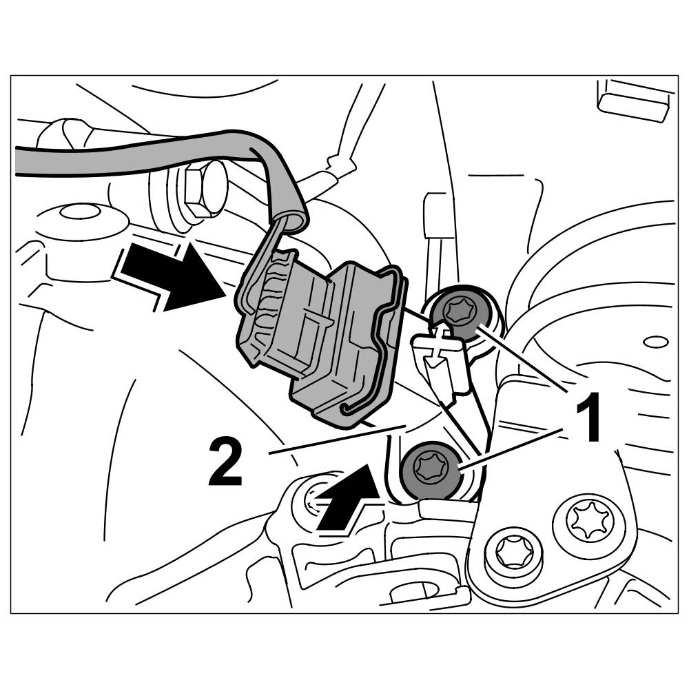 4. Position holder -2- on transmission and screw down with the two fastening screws -1-. => Tightening torque: 7.5 ftlb.
