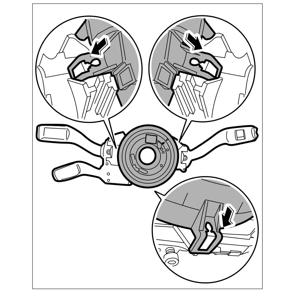 5. Position airbag contact unit and press onto the steering column switch until the three tabs engage -arrows-.