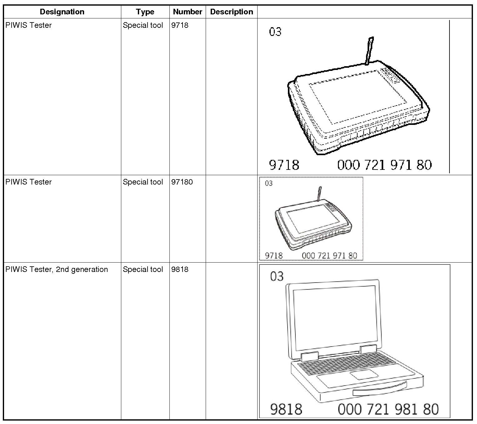 Carry out tests only with the PIWIS Tester, 2nd generation 9818 diagnostic module; do not use test lamps, voltmeters or ohmmeters.