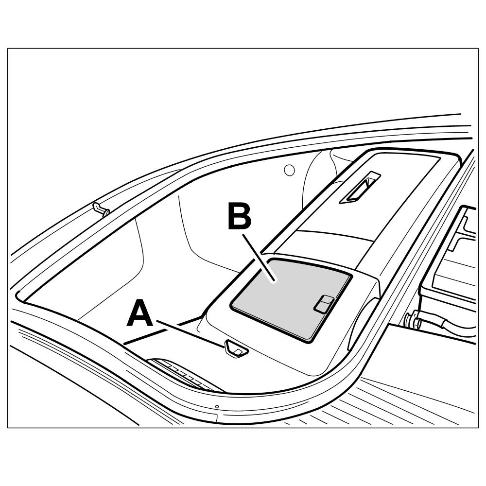 - Disengage and remove cover over brake fluid reservoir -B-. Check brake fluid level.