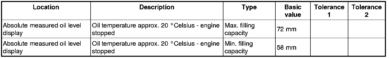 - The filling capacities are guidelines that can deviate slightly. This depends, for example, on the oil temperature and the length of time since the vehicle was driven.