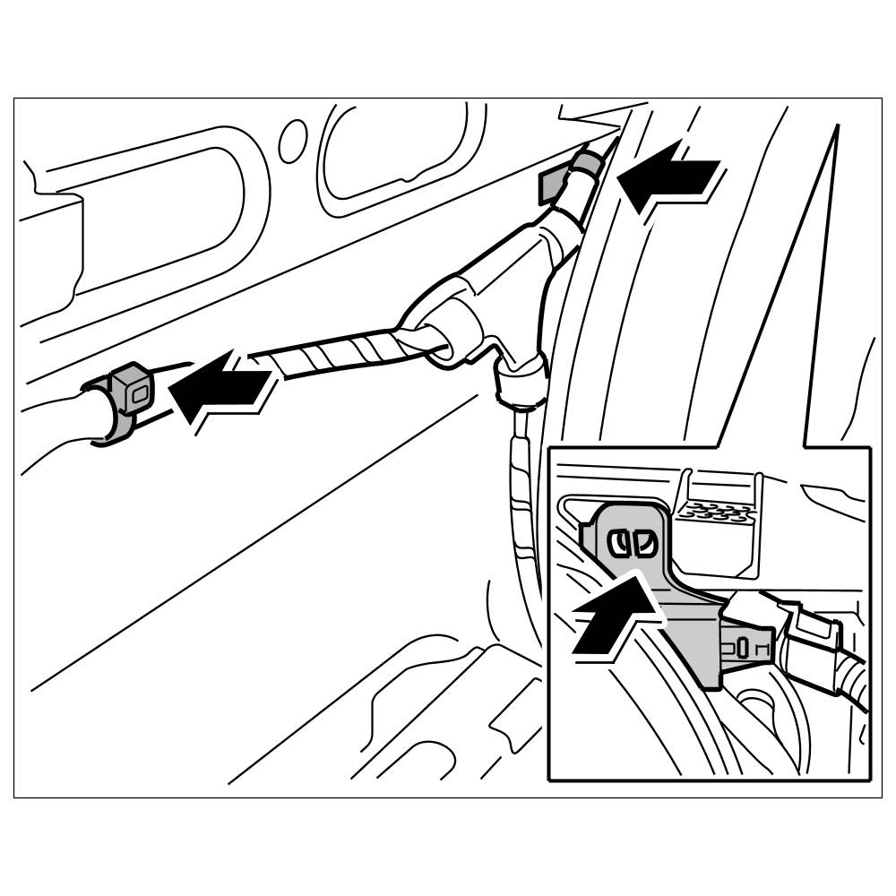 23. Push through main wire harness in direction of luggage compartment.