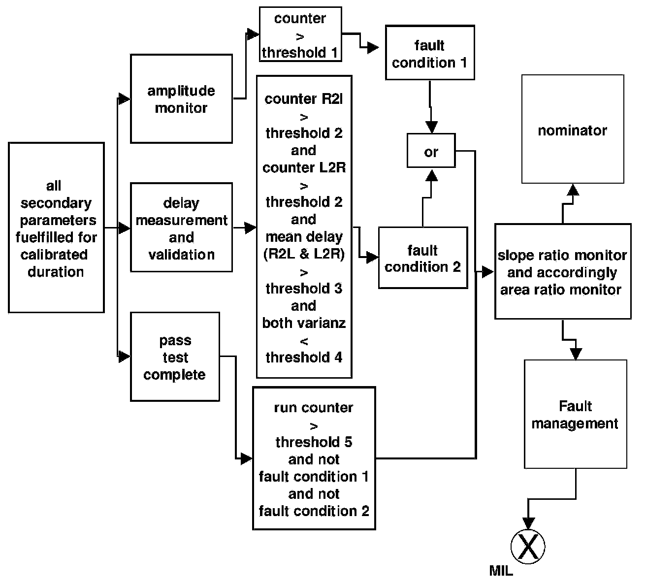 - The variance (statistics: relative variance) of every measurement necessary for fault detection is less than a calibrated threshold (typical value: ~0.02-0.1)