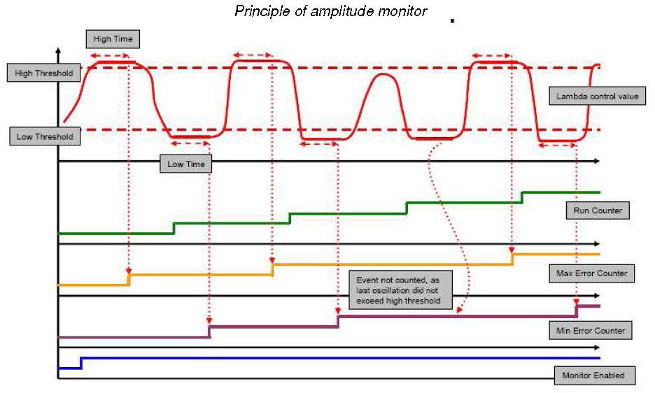 The amplitude monitor evaluates the amplitude of the lambda control output.