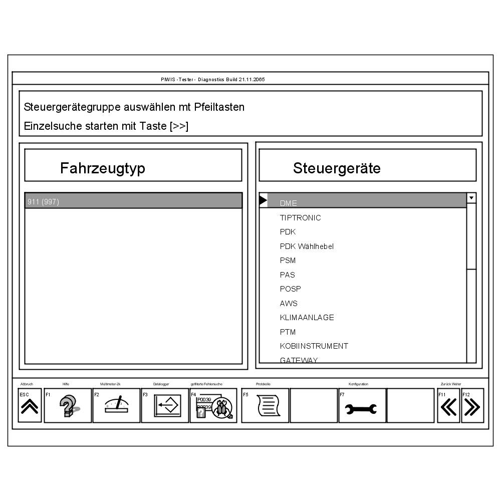 2. Start the diagnostic program, select the vehicle and highlight the DME option during control unit selection. Press F12>> to start the control unit search.