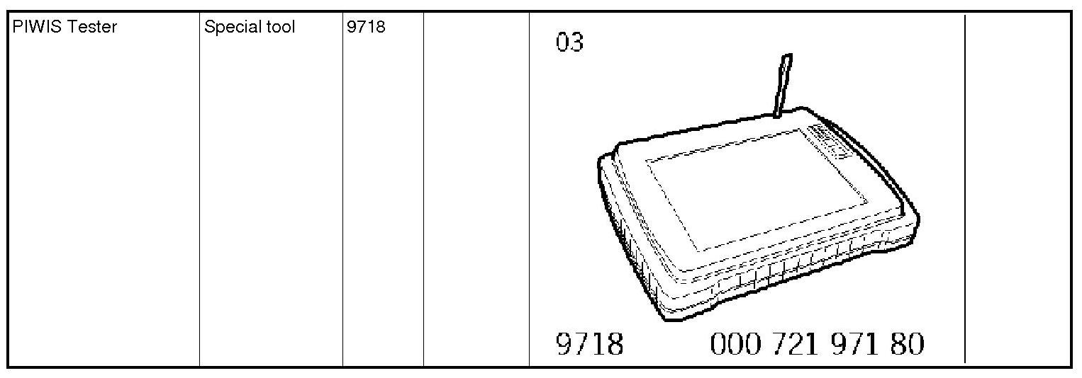 1. PIWIS Tester 9718 must be connected to the adapter line at the input socket in the passenger compartment and ignition must be switched on.