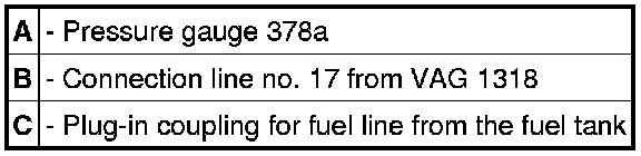 4. Start the engine and read off the fuel pressure on the pressure gauge.