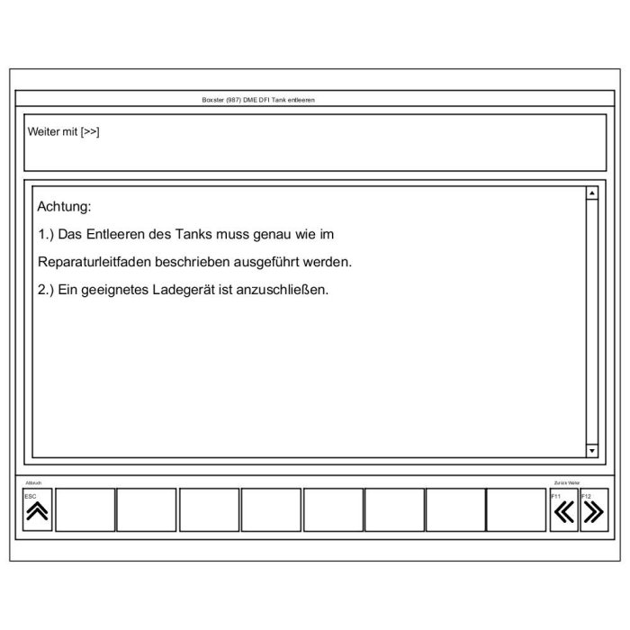 8. Activate the Drain tank (= activate fuel pump) function on the PIWIS Tester 9718 by pressing F8 Start.