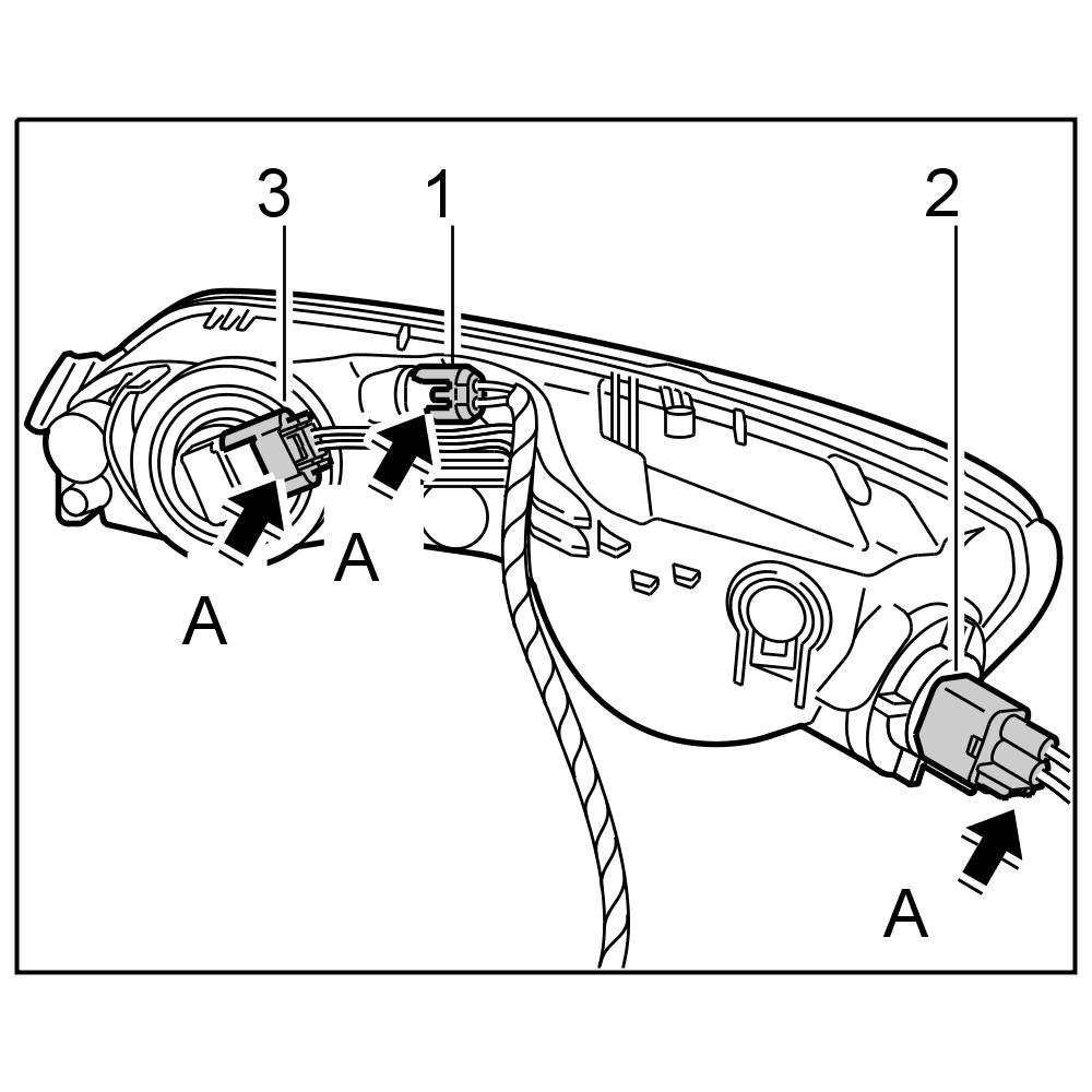 1. Release electric connector on auxiliary headlight -A-