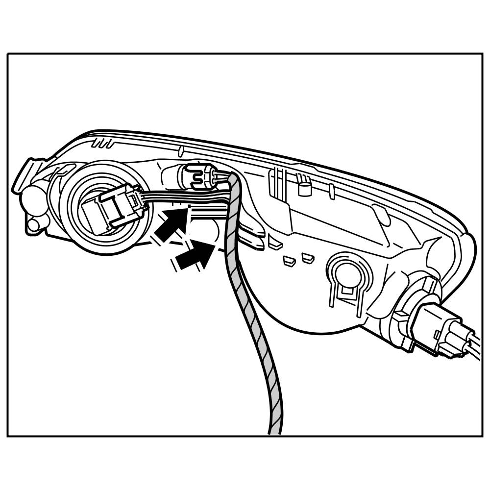 2. Connect plug connection to auxiliary headlight and engage the lines on the auxiliary headlight.