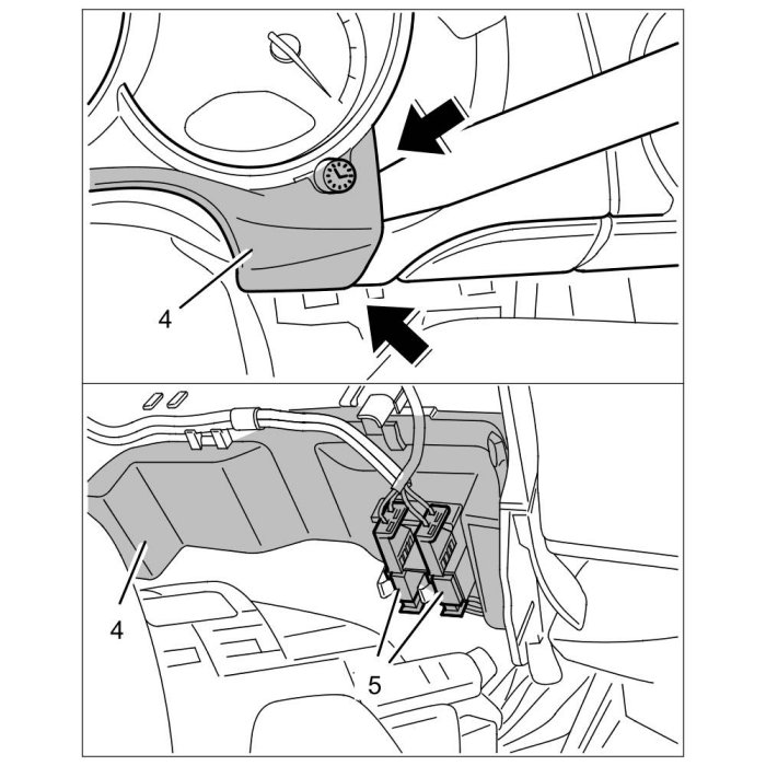 2.2.2. Disconnect electric plug connections -5- and remove upper trim panel -4-.