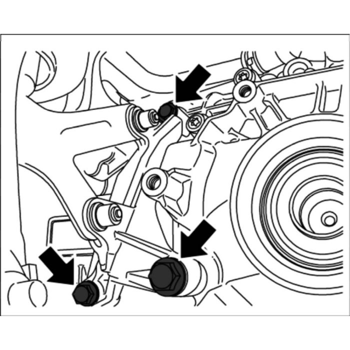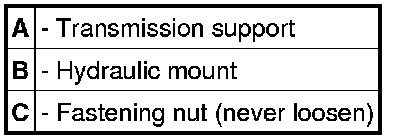 Unscrew nuts -Arrows- on hydraulic mount -B-.