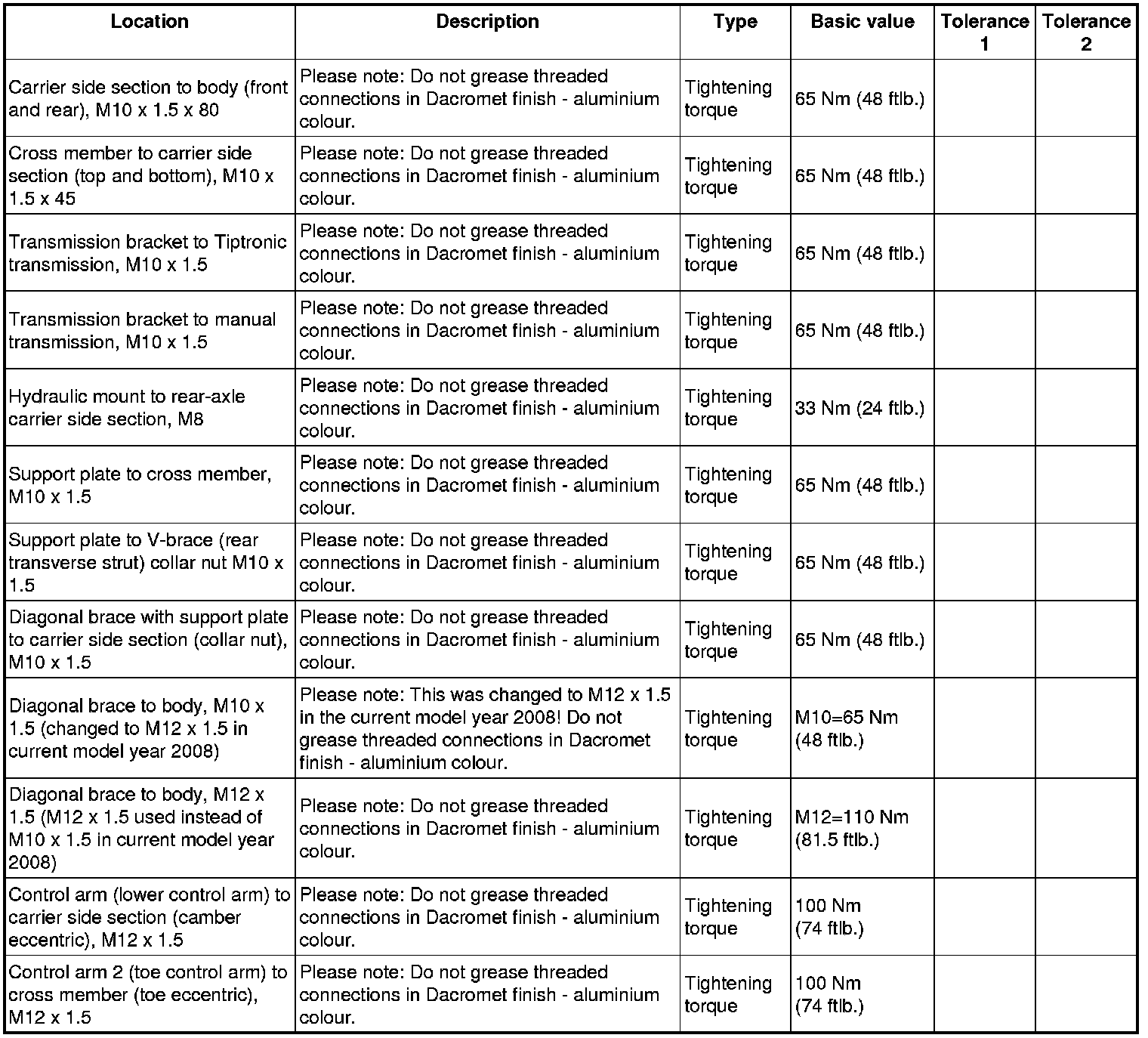5.1. Tighten screws securing rear-axle carrier side section to body.=> Tightening torque: 65 Nm (48 ftlb.)