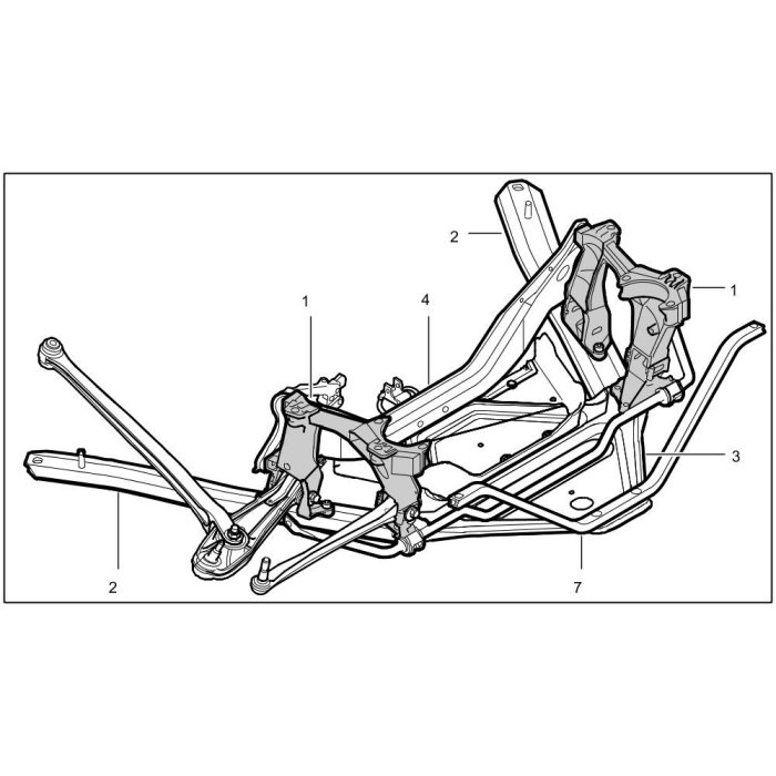 5.2. Tighten screws securing cross member to rear-axle carrier side section.=> Tightening torque: 65 Nm (48 ftlb.)