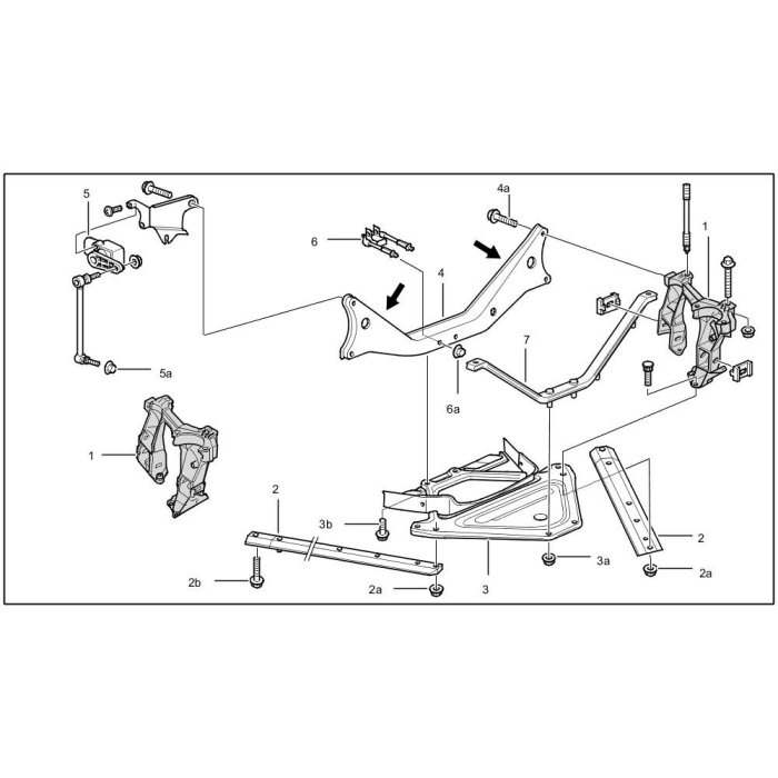 Unscrew nuts -2a- and bolts -2b- and remove diagonal braces at the left and right.