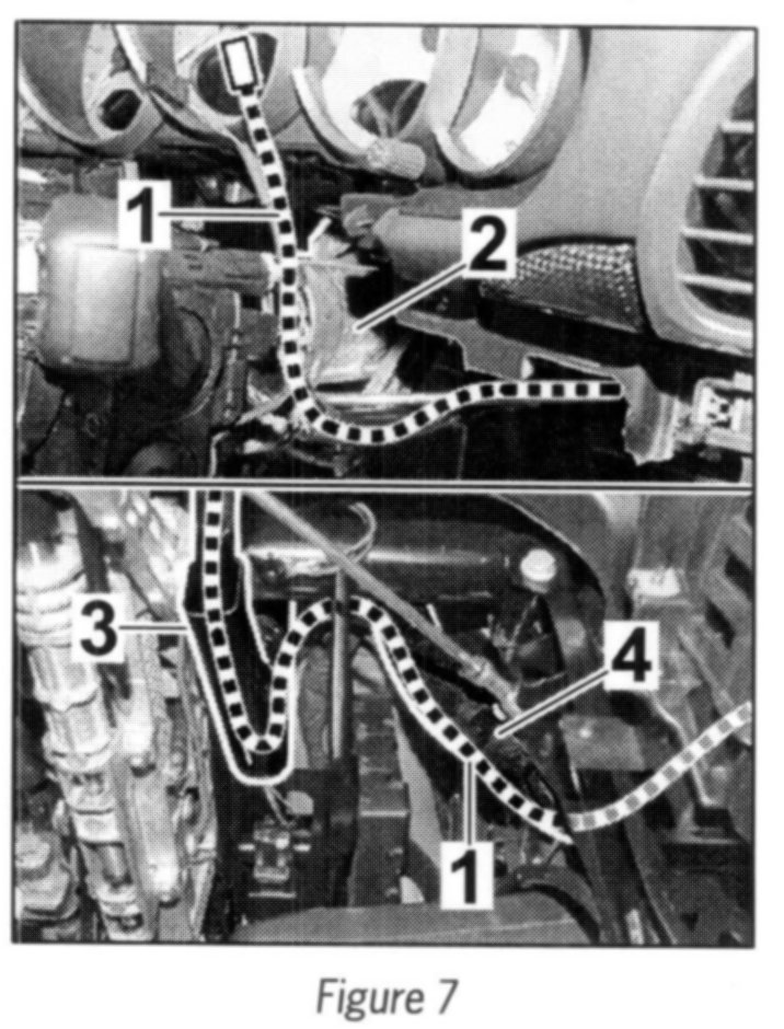 Steering column --> Figure 7-2-> into wiring duct-> Figure 7-3- > main wire harness --> Figure 7-4- > PCM installation slot