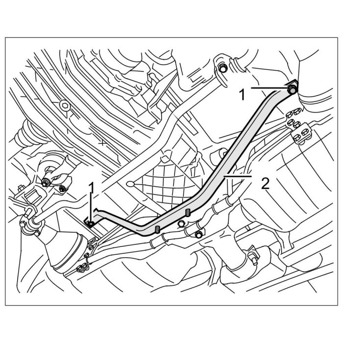 Unscrew M8 x 40 screws -1- and move anti-roll bar -2- into position.