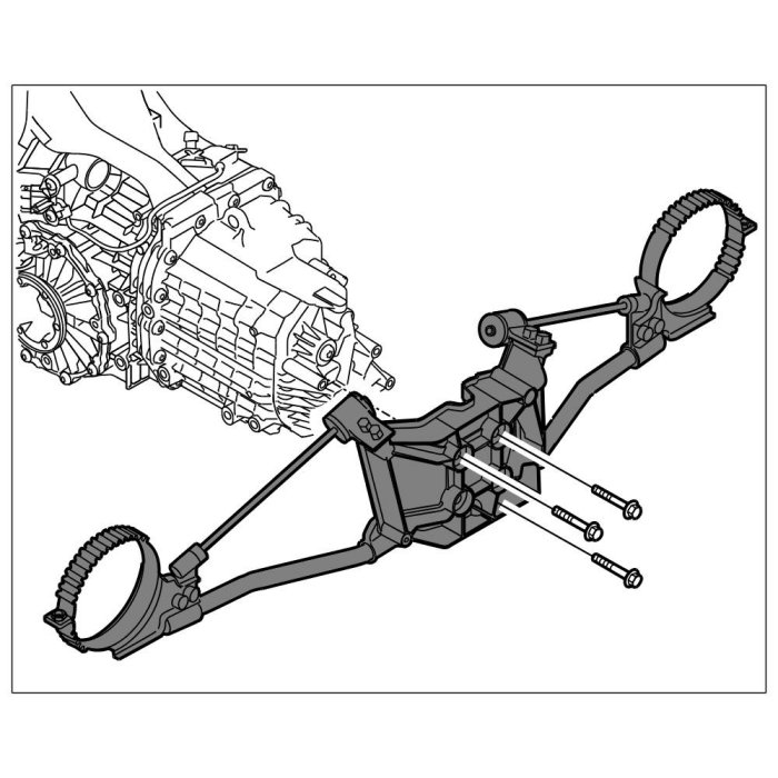 Only lower the transmission sufficiently to allow access to the cable connections and coolant hoses.