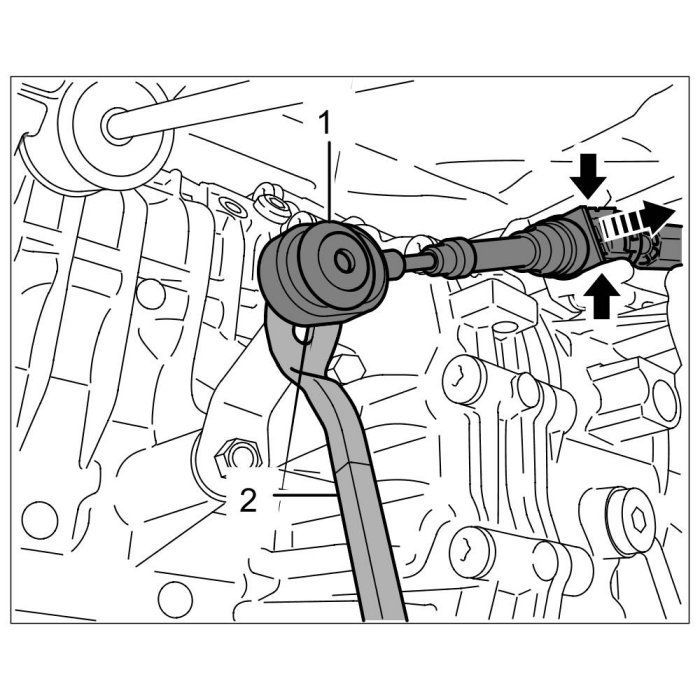 1.2. Release parking lock cable -1- at the bracket by pressing the locking lugs -arrows- together and pull it out.