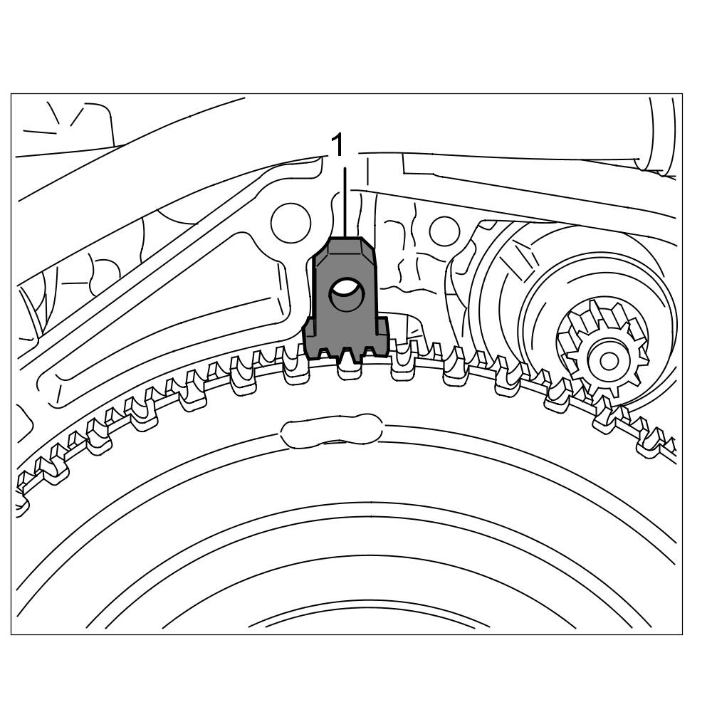 Position special tool toothed segment 9538/1 ( -1- ) for countering at the starter ring gear.