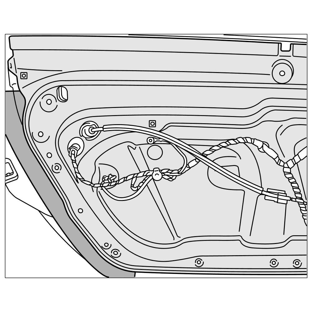 2. Slide the wire harness through the door aperture from inside and press the rubber sleeve on the wire harness into the door aperture from inside.