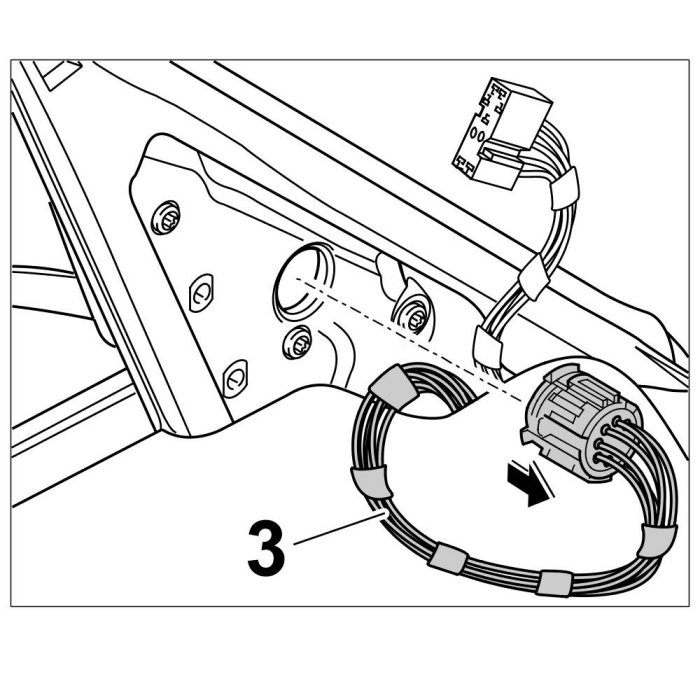 1. Disconnect the plug connection of the mirror housing -3-.