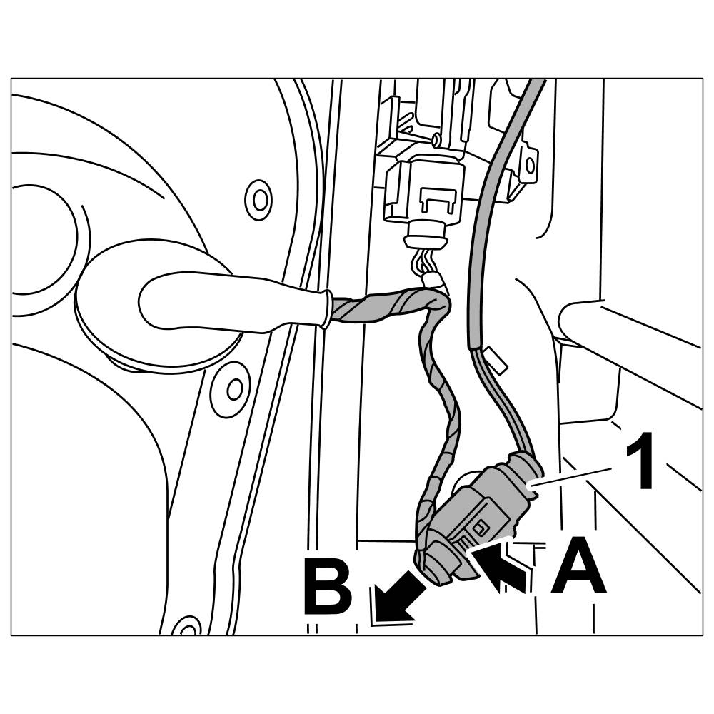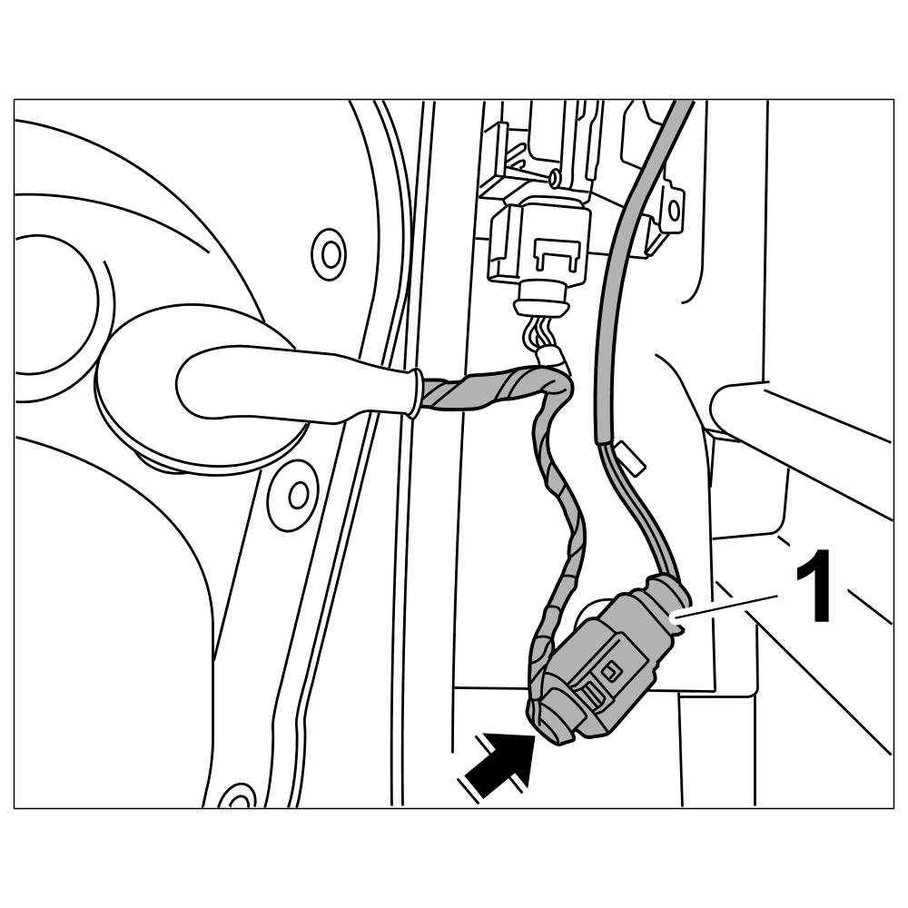 5. Press the rubber sleeve on the wire harness inwards and pull the wire harness out through the door aperture.
