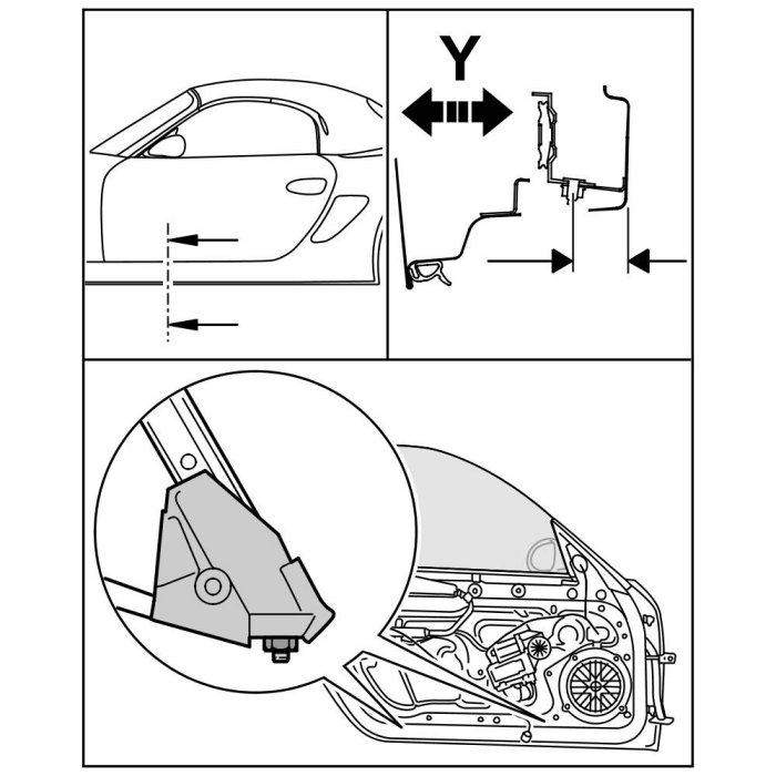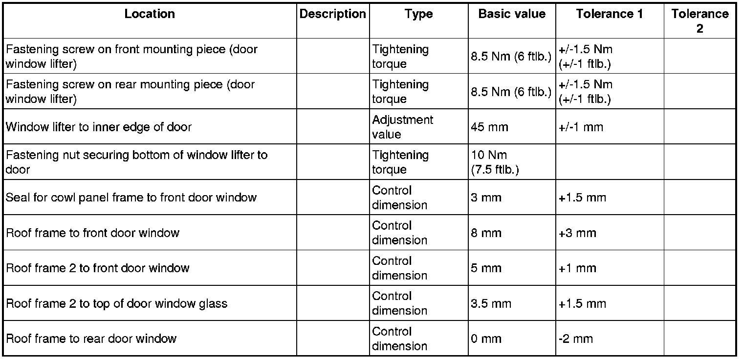 - The precondition for exact adjustment of the front door window is that the door is perfectly adjusted and correctly locked in the lock peg in accordance with the joining plan. -> 5000IN Diagram - body gap dimensions